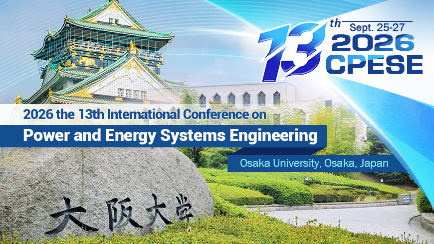 Building on the accomplishments of earlier CPESE conferences, we are pleased to announced that the 13th International Conference on Power and Energy Systems Engineering (CPESE 2026) will be held during September 25–27, 2026, in Osaka, Japan, CPESE continues to serve as a leading global platform for researchers, industry experts, and educators. The conference facilitates the exchange of the latest innovations, trends, practical experiences, and key challenges in Power and Energy Systems Engineering.